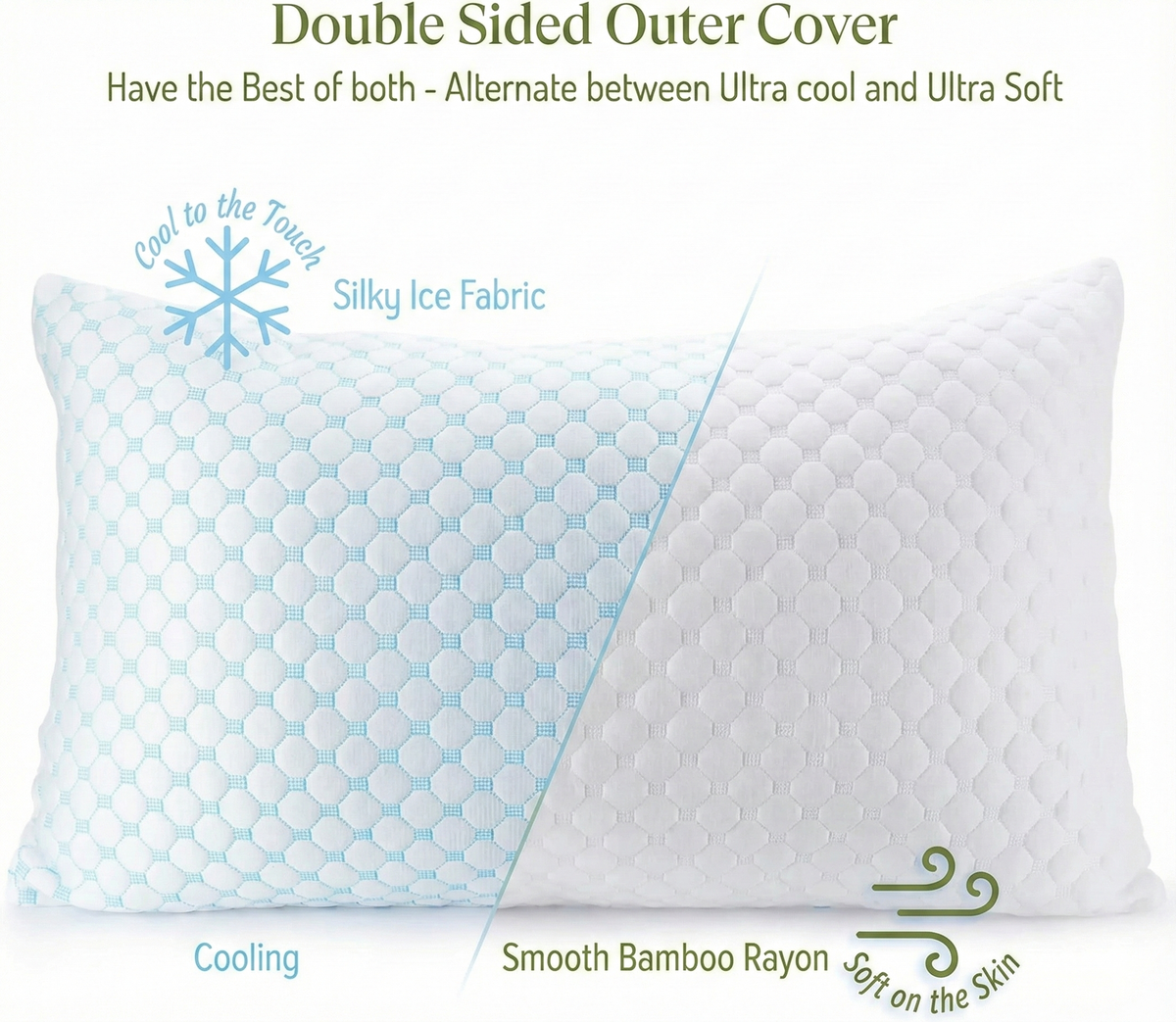 Engineered with Silky Ice Fabric, this side instantly feels cool to the touch. It actively reduces the temperature around your head and neck to stop night sweats before they start, delivering immediate relief and uninterrupted sleep.