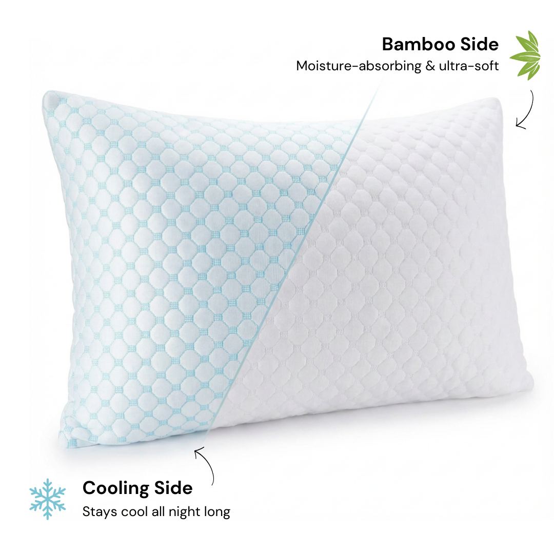 The light blue side provides instant and long-lasting cooling, even during intense night sweats. The white bamboo side naturally absorbs and regulates moisture. So you finally wake up feeling refreshed, without damp pillows or interrupted nights.